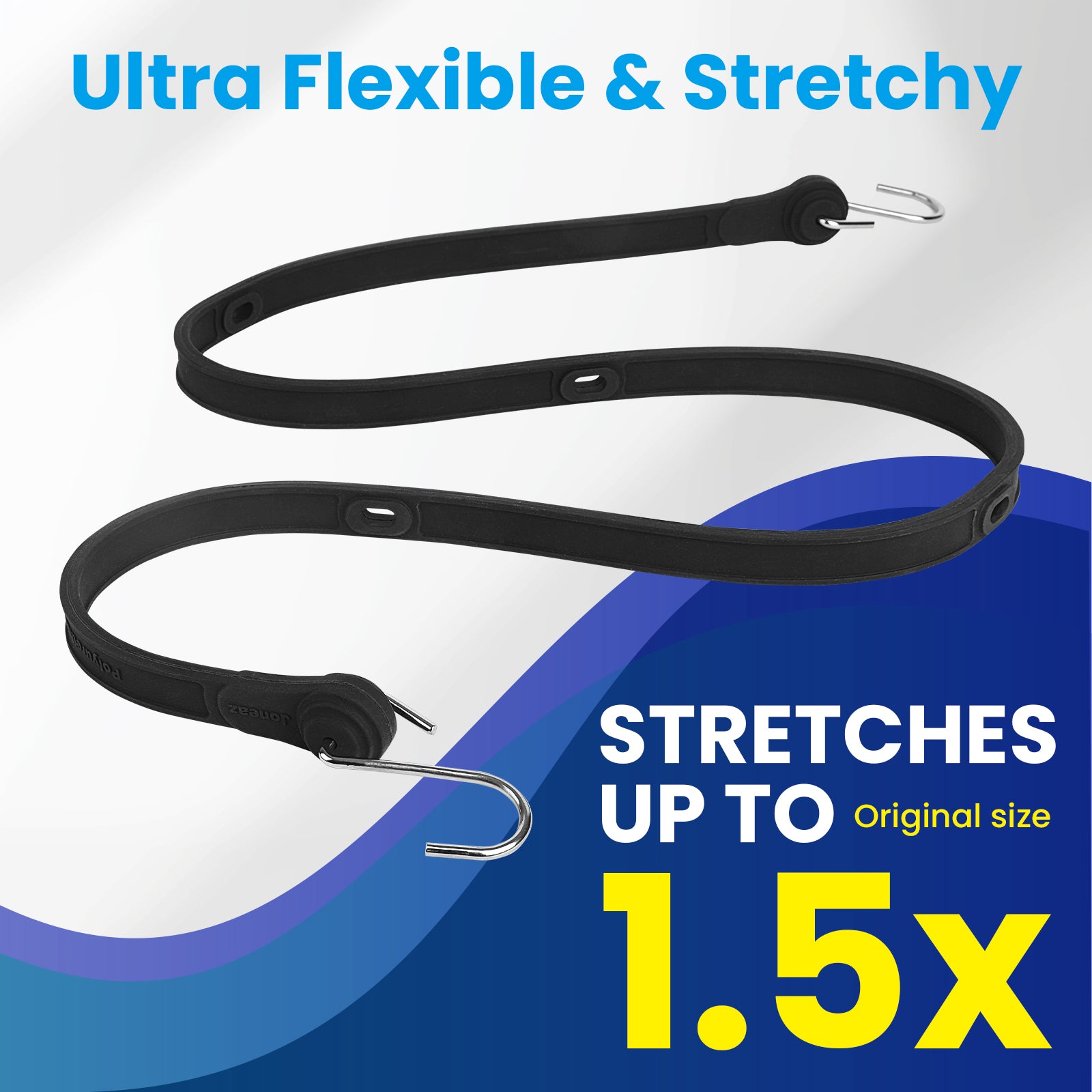 Joneaz Flat Solid Silicone Rubber Bungee Cords with Hooks Adjustable, 4 Pack Heavy Duty Tie Down Straps,Above 150% Stretch