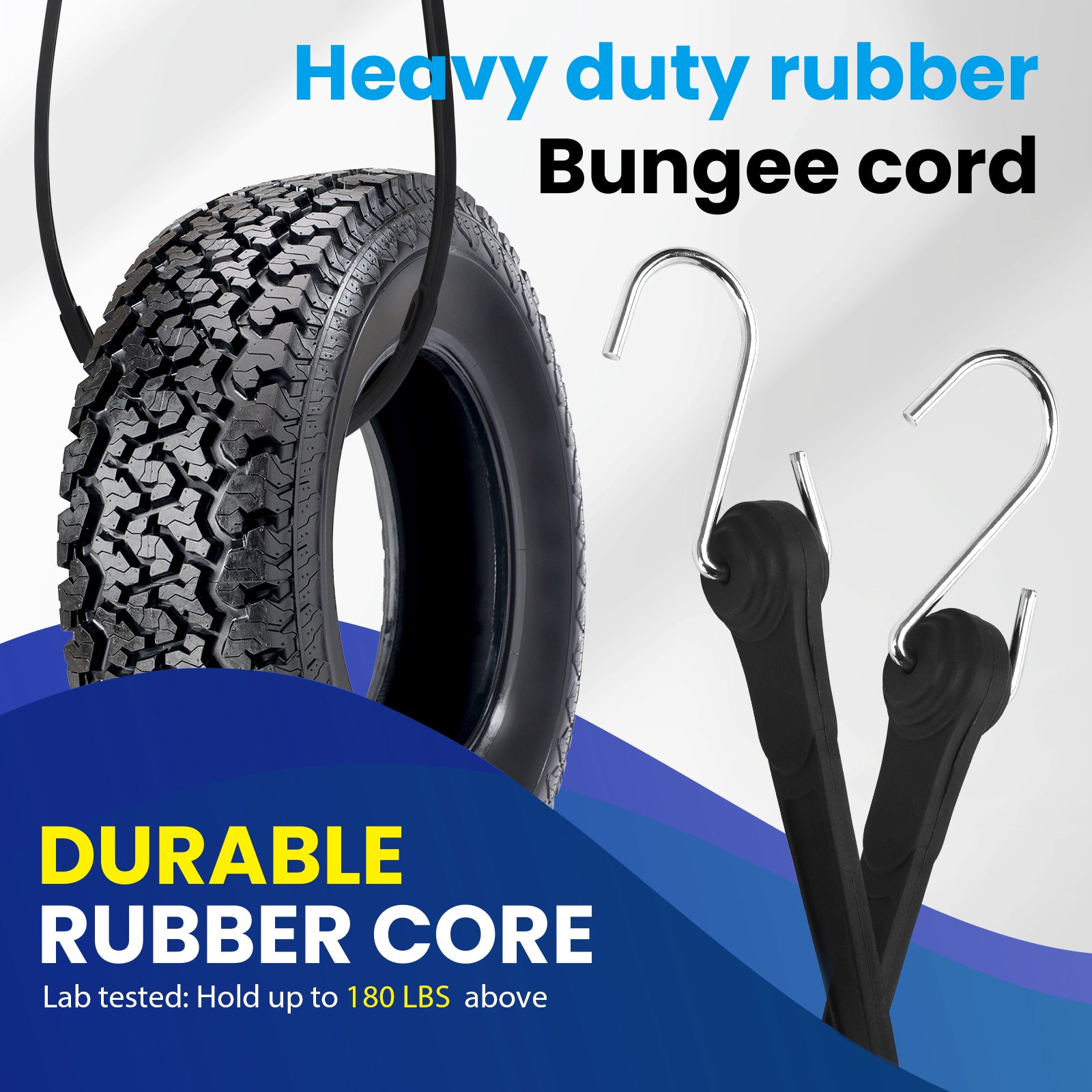 • Versatile: Set of 4 heavy-duty bungee cords with hooks, ideal for securing loads, tying down equipment, or various outdoor and household uses.