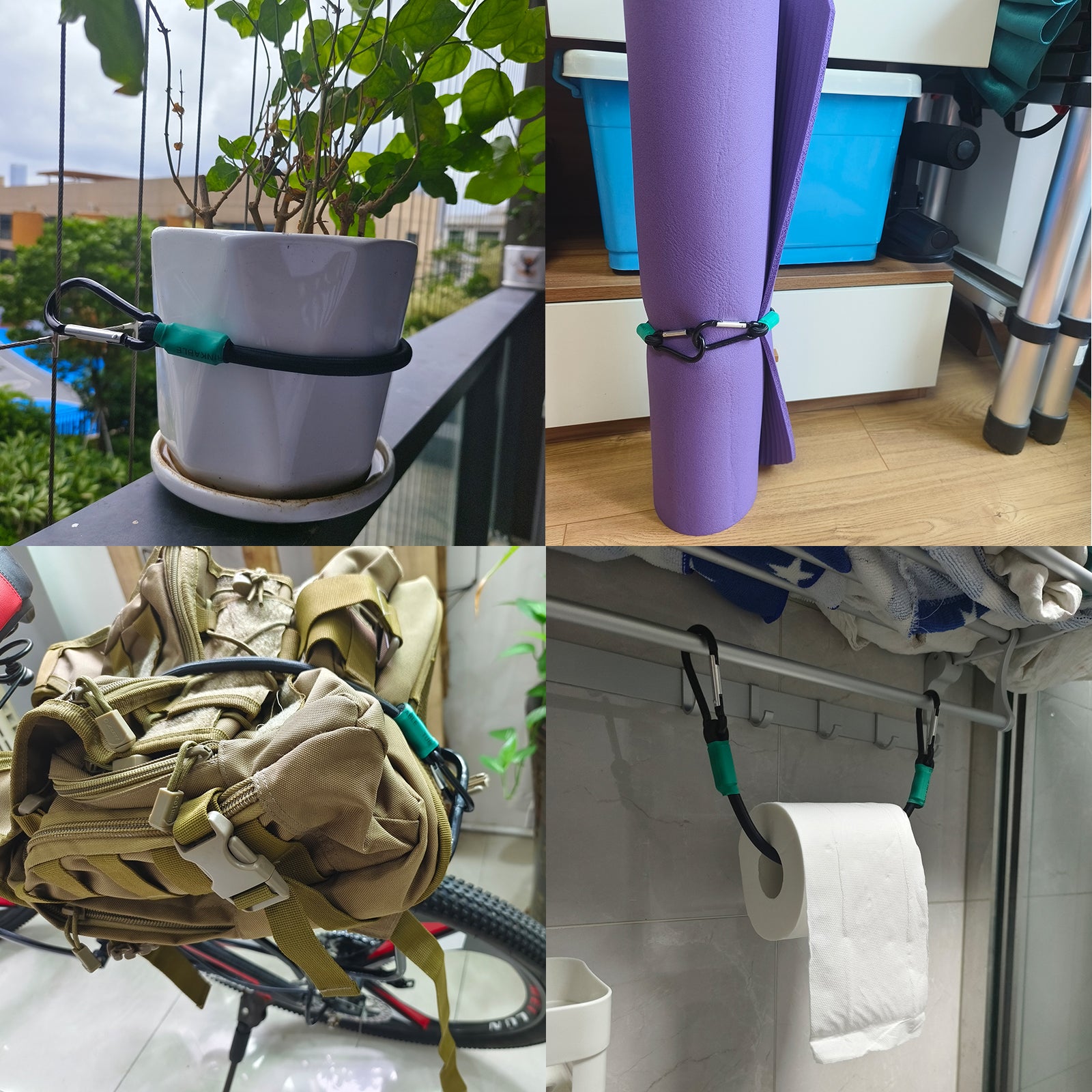 - Carabiners applied, keep the hooks locked in place. Ideal for securing tarps, truck top covers, also can be used to bundling tools, motorcycle rear luggage and luggage rack items